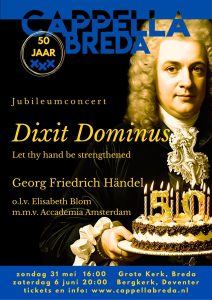Vijftig jaar zang, verbinding en muzikale ambitie: Cappella Breda viert haar gouden jubileum met een groots en feestelijk concert rond de muziek van Georg Friedrich Händel. Onder de bezielende leiding van dirigent Elisabeth Blom presenteert het koor een programma dat barst van energie, expressie en koninklijke allure – een viering die verleden, heden en toekomst met elkaar verbindt.